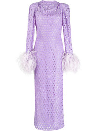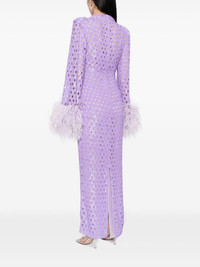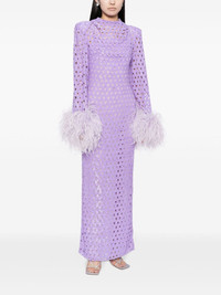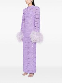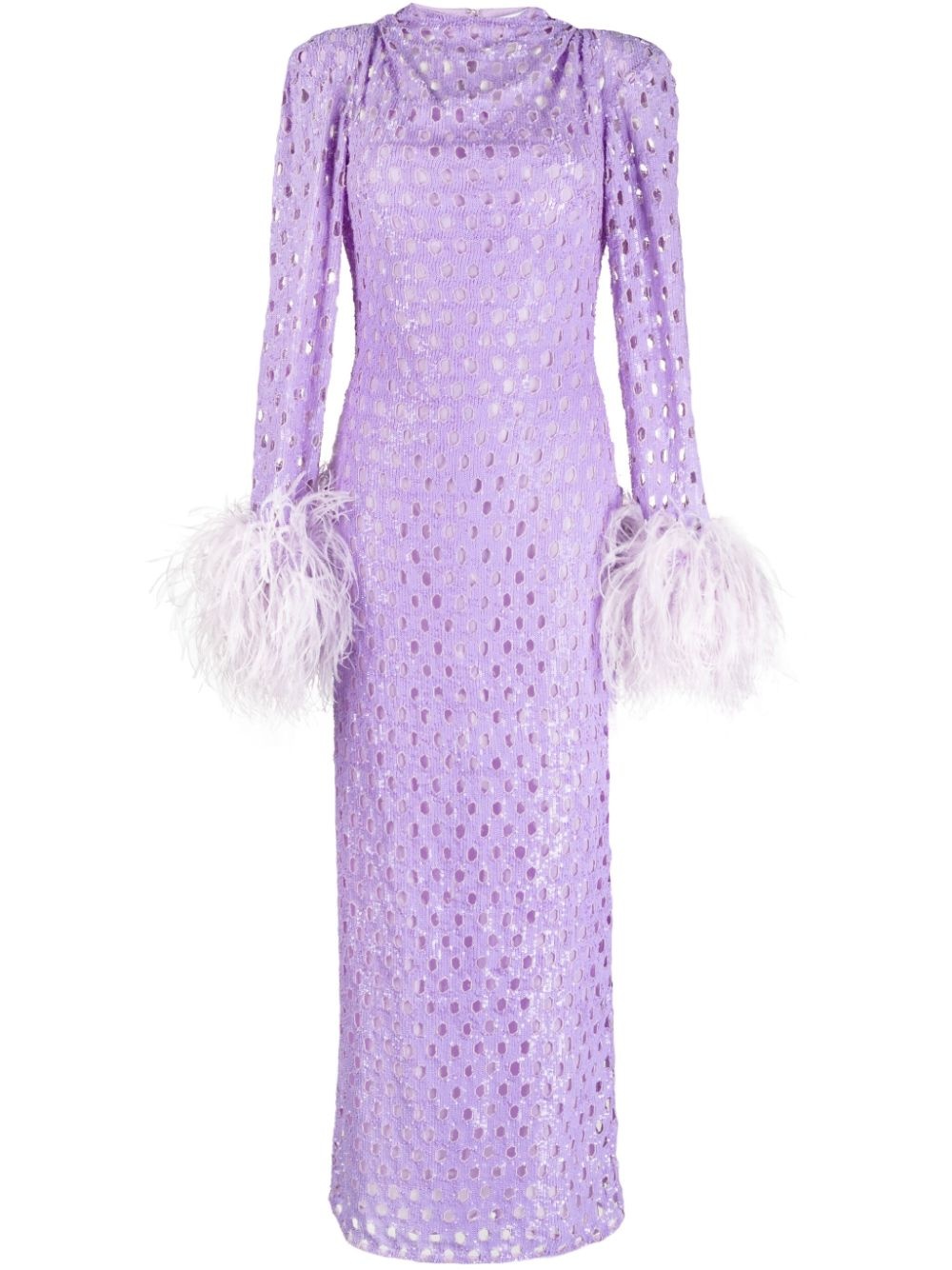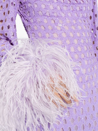 Mara perforated gown Highlights - Lilac purple - Feather detailing - Fully perforated - Cowl neck - Long sleeves - Rear zip fastening - Central rear vent - Straight hem - Long length Imported Composition Nylon 100% SIZE & FIT Model measurements Height 5 ft 10 in(1.77 m) Bust/Chest 28.74 in(73 cm) Hips 35.82 in(91 cm) Waist 24.4 in(62 cm) FittingInformation Designed for a close fit at the chest and waist with a loose fit at the hip The detachable slip sits just away from the body, offering a close yet comfortable fit Made from a heavyweight fabric This piece fits true to size – take your usual size