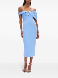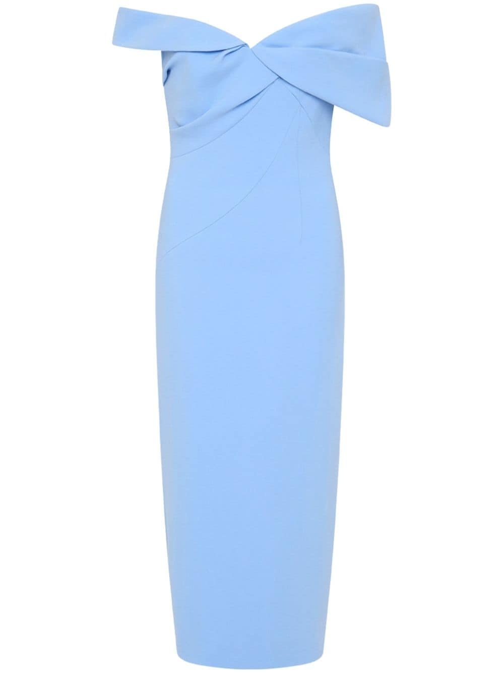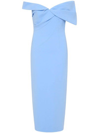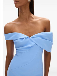 Mattie dress Highlights - Sky blue - Rear zip fastening - Gathered detailing - Off-shoulder - Short sleeves - Mid-length - Rear slit Imported Composition Outer: Acetate 71%, Polyester 29% Lining: Polyester 100%