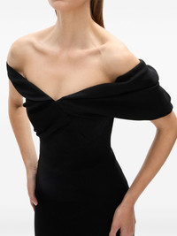 Mattie dress Highlights - Black - Off-shoulder - Short sleeves - Asymmetric design Imported Composition Acetate 71%, Polyester 29%