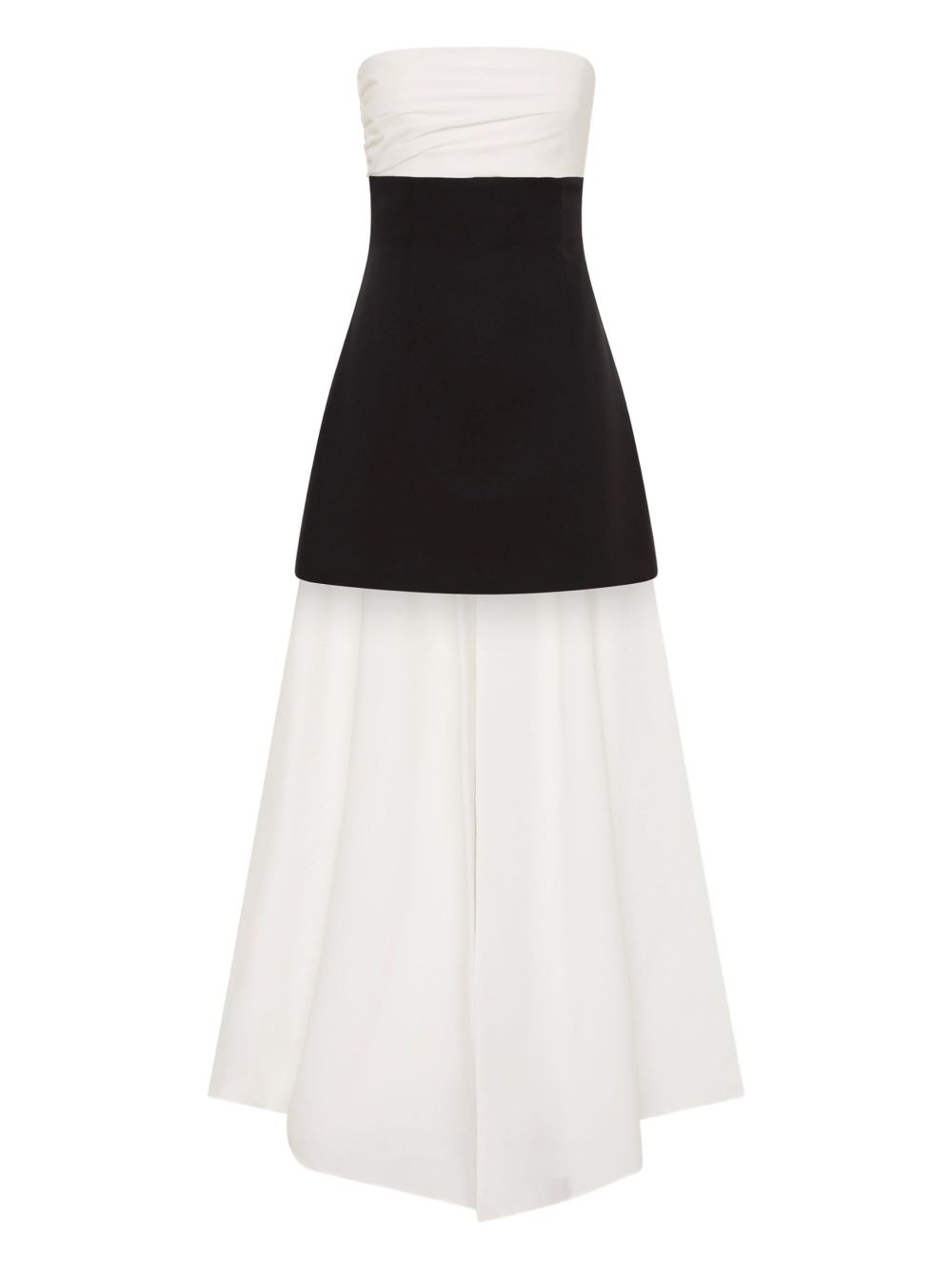 Odette strapless mini dress Highlights - Black and ivory - Strapless neckline - Gathered detail Imported Composition Polyester 97%, Spandex/Elastane 3% Washing instructions Read Manufacturer Guidelines