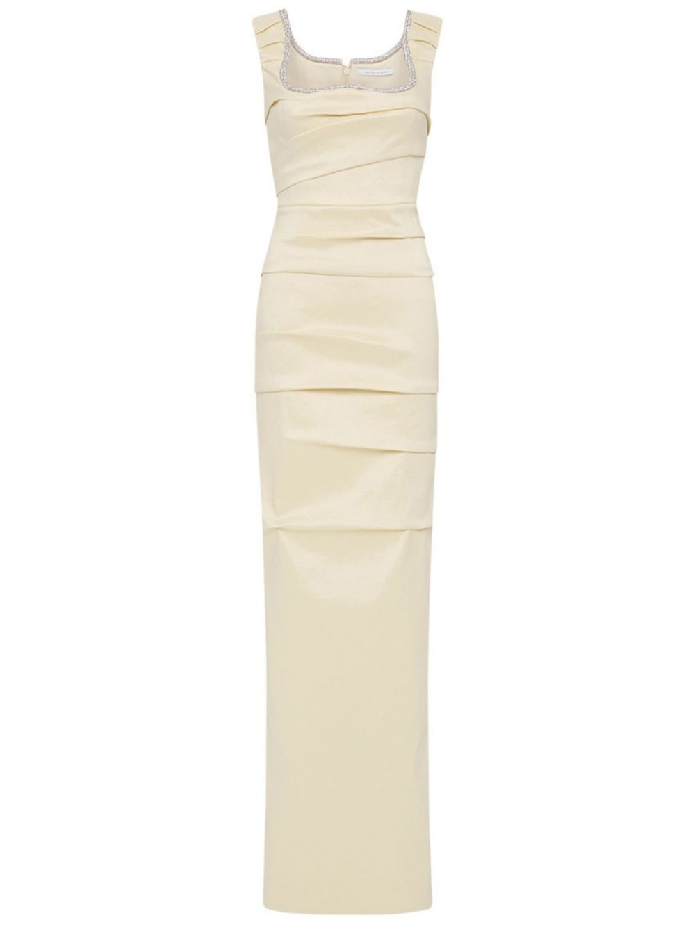 Onyx gown Highlights - White - Rear zip fastening - Draped design - Square neck - Sleeveless - Fitted waistline - Rear slit - Floor-length Imported Composition Polyester 50%, Nylon 50%