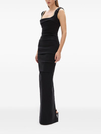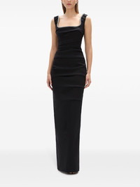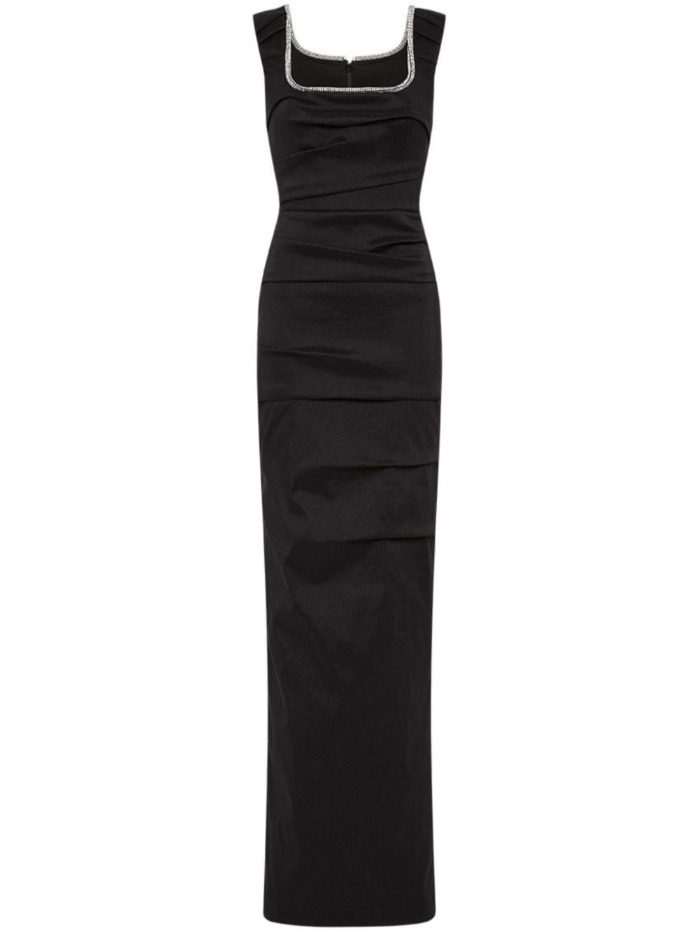 Onyx gown Highlights - Black - Draped design - Rear zip fastening - Contrasting trim - Square neck - Sleeveless - Fitted waistline - Rear slit - Floor-length Imported Composition Nylon 50%, Polyester 50%