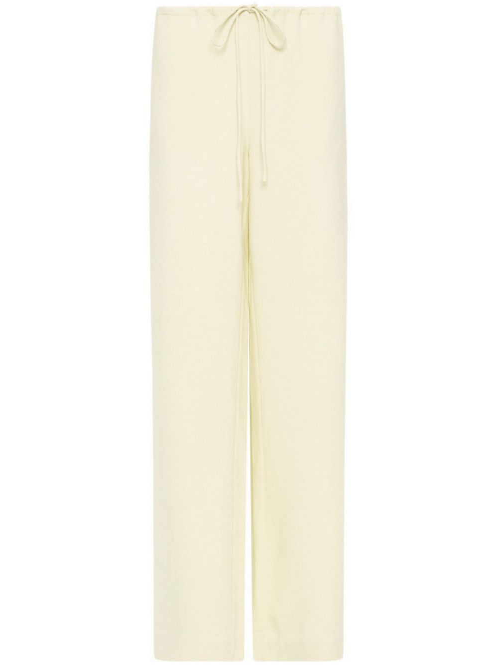 Orion trousers Highlights - Light yellow - Stretch-jersey - Elasticated waistband - Two side slit pockets - Wide leg Imported Composition Viscose 96%, Spandex/Elastane 4%