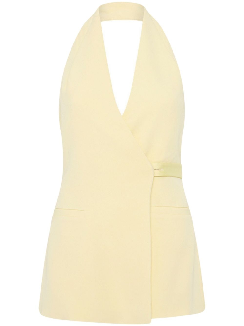 Orion vest Highlights - Yellow - Halterneck - V-neck - Side welt pocket - Open back - Sleeveless - Straight hem Imported Composition Viscose 96%, Spandex/Elastane 4%