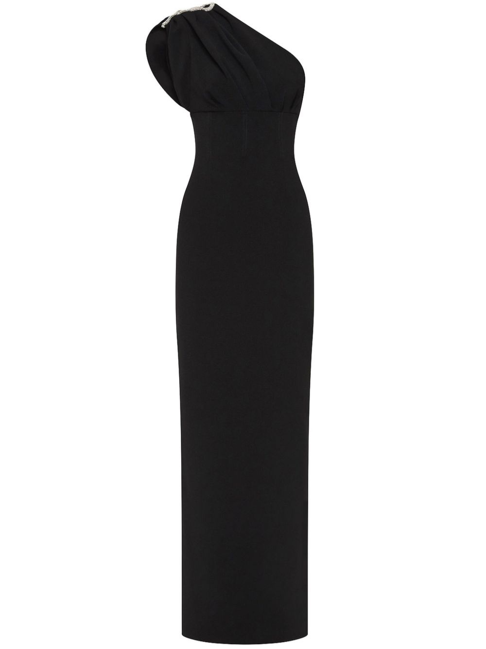 Winona gown Highlights - Black - Concealed rear zip fastening - Asymmetric neck - Crystal embellishment - Pleat detailing Imported Composition Polyester 97%, Spandex/Elastane 3%