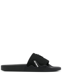 Astra logo slides Raf Simons' affinity for merging modern proportions with futuristic detailing is captured in these black slides. A tonal logo charm adds a playful touch, while a moulded footbed helps to boost comfort. Highlights - Black - Textured finish - Logo plaque - Embossed logo to the side - Wide strap - Open toe - Moulded footbed - Flat rubber sole Imported Composition Lining: Fabric 100% Outer: Polyurethane 100%, Fabric 100% Sole: Polyurethane 100%, Rubber 100% SIZE & FIT Measurement Sole height 1.18 in(3 cm)