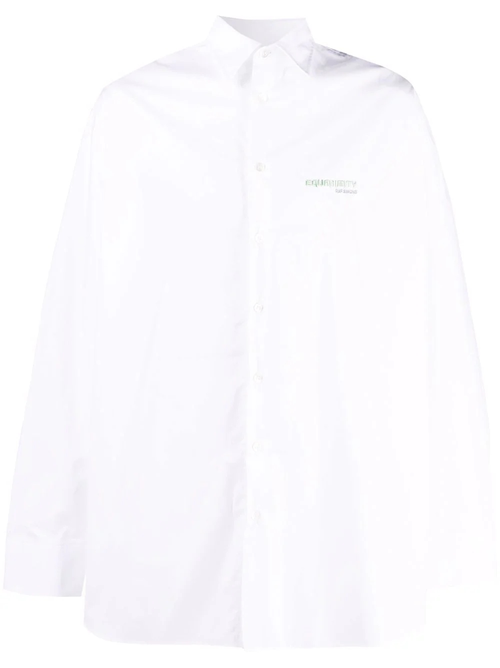 embroidered-logo shirt white cotton embroidered logo at the chest logo print to the rear classic collar front button fastening long sleeves curved hem Made in Italy Composition Cotton 100% SIZE & FIT Model measurements Height 6 ft 2 in(1.89 m) Bust/Chest 37.79 in(96 cm) Hips 37 in(94 cm) Waist 29.92 in(76 cm) FittingInformation This piece fits true to size. We recommend you get your regular size Cut for a loose fit Made with a mid-weight non-stretch fabric Washing instructions Machine Wash