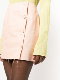 frayed cotton miniskirt Rendered in a pale-pink hue, this miniskirt from RAF SIMONS is detailed with an off-centre button closure and frayed trims, illustrating the label’s streetwear aesthetic. Made in Italy Composition Cotton 100% SIZE & FIT Model measurements Height 5 ft 10 in(1.77 m) Bust/Chest 29.92 in(76 cm) Hips 34.25 in(87 cm) Waist 23.62 in(60 cm) FittingInformation This piece fits true to size. We recommend you get your regular size Cut for a slim fit Made with a mid-weight non-stretch fabric Washing instructions Machine Wash