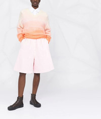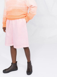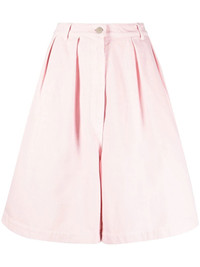 pleated denim shorts pink cotton pleat detailing logo patch to the rear belt loops front button and zip fastening two side inset pockets knee-length Made in Italy Composition Cotton 100% SIZE & FIT Model measurements Height 5 ft 10 in(1.77 m) Bust/Chest 32.28 in(82 cm) Hips 35.03 in(89 cm) Waist 25.19 in(64 cm) FittingInformation This piece fits true to size. We recommend you get your regular size Designed to be fitted at the waist and hips, loose over the leg Made with a mid-weight non-stretch fabric Washing instructions Machine Wash