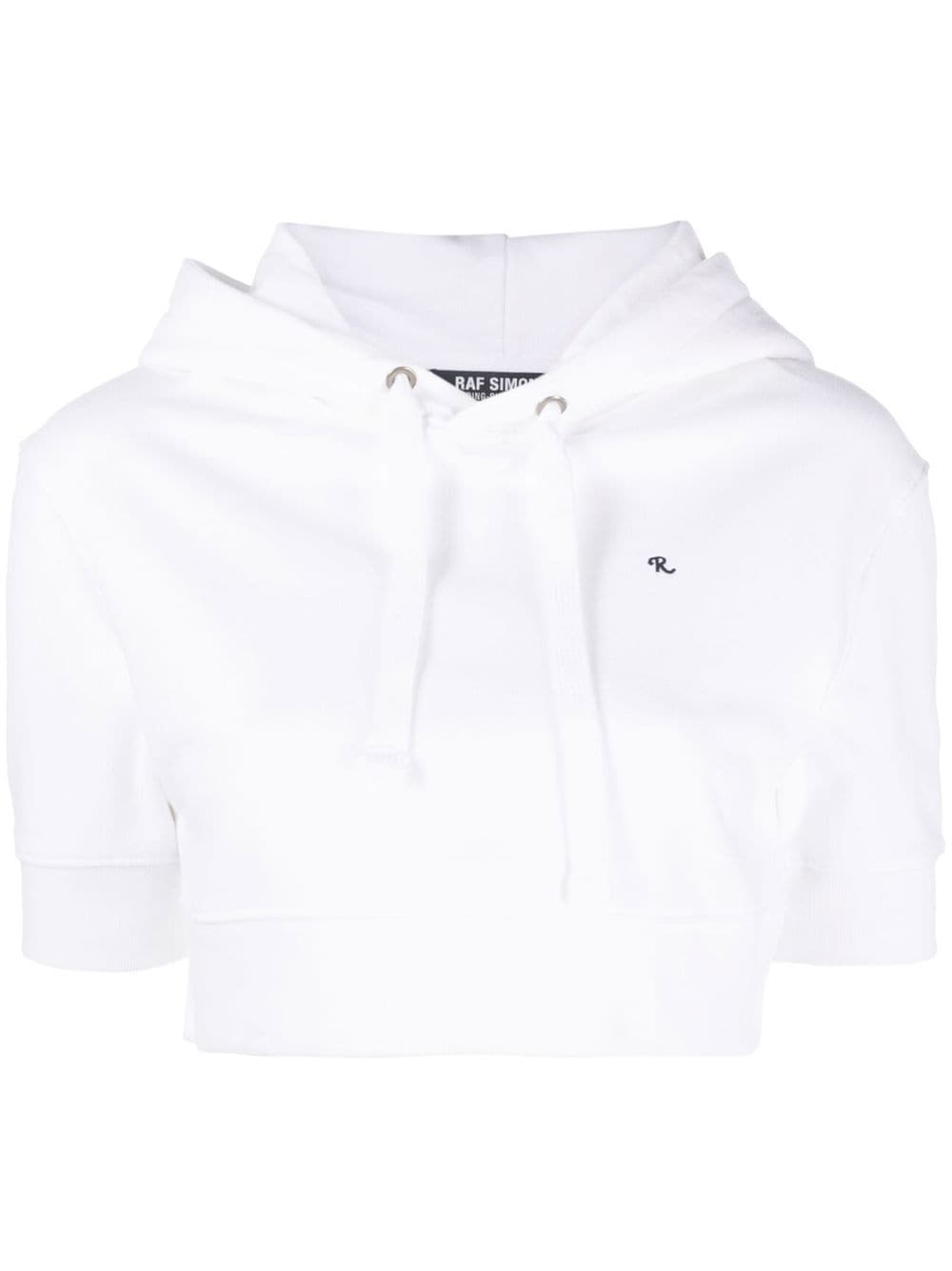 short-sleeve cropped hoodie Raf Simons presents a new take on the classic hoodie with this piece. Made from crisp white cotton, this short-sleeved piece is cut to a cropped silhouette that is evocative of the brand's contemporary aesthetic. Imported Composition Cotton 100% SIZE & FIT Model measurements Height 5 ft 10 in(1.78 m) Bust/Chest 30.7 in(78 cm) Hips 34.64 in(88 cm) Waist 23.22 in(59 cm) FittingInformation This piece fits true to size. We recommend you get your regular size Cut for a relaxed fit Made with a mid-weight fabric Washing instructions Machine Wash