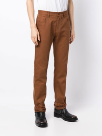 slim-cut leg trousers cognac brown cotton slim cut belt loops front button and zip fastening classic five pockets Made in Italy Composition Cotton 100% SIZE & FIT Model measurements Height 6 ft 2 in(1.87 m) Bust/Chest 34.25 in(87 cm) Hips 36.22 in(92 cm) Waist 29.52 in(75 cm) FittingInformation This piece fits true to size. We recommend you get your regular size Designed for a slim fit at the waist and loose over the leg Made with a mid-weight fabric Washing instructions Machine Wash