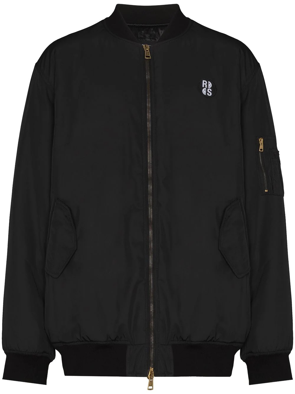smiley-print bomber jacket Born from a collaboration between Raf Simons and Smiley, this hoodie is accented with a friendly face motif to the rear. Presented in classic black, the piece is complemented with a front logo patch. Made in Italy Composition Lining: Polyester 100% Outer: Polyester 100% SIZE & FIT Model measurements Height 6 ft 1 in(1.86 m) Bust/Chest 32.67 in(83 cm) Hips 35.03 in(89 cm) Waist 25.98 in(66 cm) Washing instructions Machine Wash