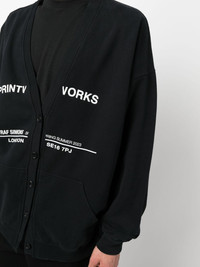 tour-print fleece cardigan It is through understated silhouettes that RAF SIMONS defines its signature minimalist streetwear style. Cut from cotton fleece, this black cardigan is adorned with a tour dates print at the back. Highlights - Black - Cotton - Jersey fleece - Tour dates print to the rear - Logo print to the front - V-neck - Front button fastening - Drop shoulder - Long sleeves - When buying this unisex item, keep in mind that it is graded in standard men's sizing. Imported Composition Cotton 100% SIZE & FIT Model measurements Height 5 ft 10 in(1.77 m) Bust/Chest 32.28 in(82 cm) Hips 35.03 in(89 cm) Waist 25.19 in(64 cm) Measurement CHEST 55 in(139.7 cm) SLEEVE LENGTH 22.99 in(58.4 cm) Shoulder Width 29.01 in(73.7 cm) LENGTH 27.99 in(71.1 cm) WAIST 47.99 in(121.9 cm) FittingInformation This unisex piece is designed for a loose fit whether you usually select women's or men's sizes Made with a midweight knit, this piece offers some stretch