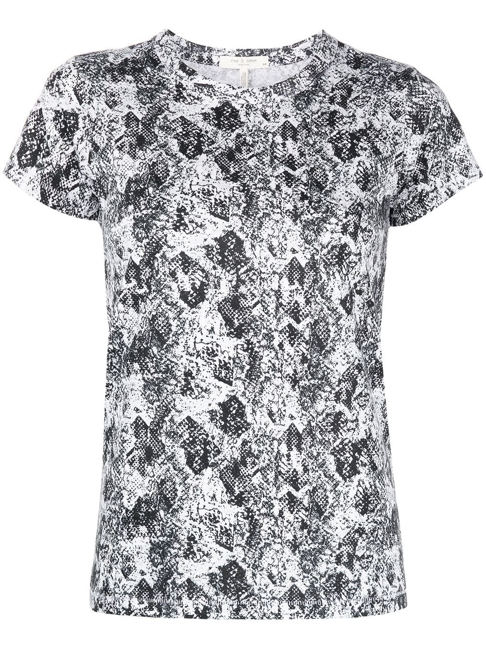 all-over snakeskin T-shirt grey/white organic cotton all-over snakeskin print round neck short sleeves straight hem Imported Composition Body: Organic Cotton 100% SIZE & FIT Model measurements Height 5 ft 10 in(1.77 m) Bust/Chest 33.85 in(86 cm) Hips 35.03 in(89 cm) Waist 24.01 in(61 cm) FittingInformation This piece fits true to size. We recommend you get your regular size Cut for a slim fit Made with a lightweight fabric Washing instructions Machine Wash