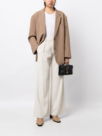 Bennett wide-leg trousers Highlights - Ivory white - Textured finish - Pleat detailing - Belt loops - Concealed front fastening - High-waisted - Wide leg - Straight hem Imported Composition Outer: Polyester 85%, Polyamide 12%, Elastane 3% Lining: Polyester 56%, Cotton 44% SIZE & FIT Model measurements Height 5 ft 10 in(1.77 m) Bust/Chest 31.49 in(80 cm) Hips 35.43 in(90 cm) Waist 25.19 in(64 cm) FittingInformation Designed with a wide-leg cut, these trousers allow for a close fit at the waist and offer a loose and roomy fit over the leg Made from a midweight stretch fabric, this piece offers elasticity and flexibility when worn This piece fits true to size – take your usual size Washing instructions Dry Clean Only