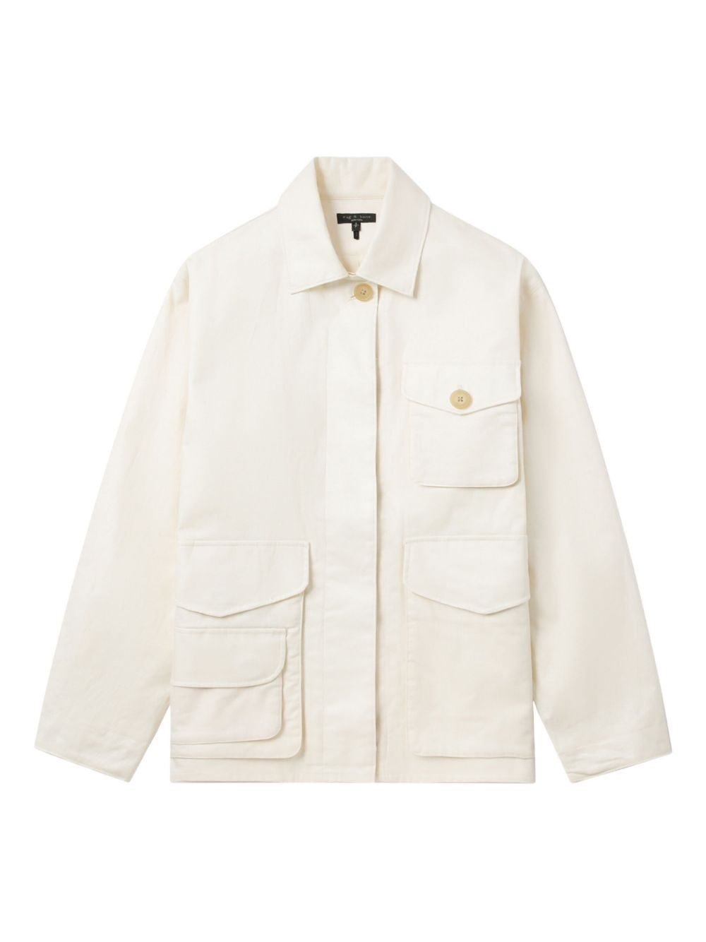 button-fastening pocket jacket Highlights - Off-white - Collared neck - Multiple pockets - Button fastening - Long sleeves Imported Composition Fabric 100% Washing instructions Read Manufacturer Guidelines