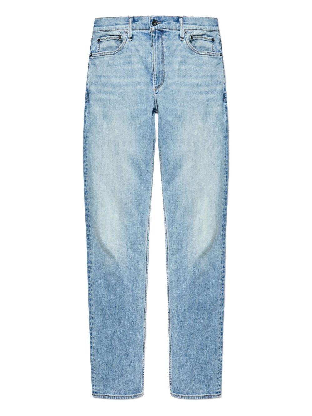 cotton jeans Highlights - Powder blue - Front button fastening - Classic five pockets - Belt loops - Tapered leg Imported Composition Cotton 100%