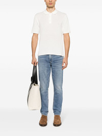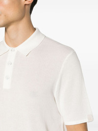Harvey ribbed-knit polo shirt Highlights - Ivory white - Cotton blend - Ribbed knit - Logo patch at the sleeve - Spread collar - Front button placket - Short sleeves - Straight hem Imported Composition Cotton 73%, Viscose 21%, Nylon 6% SIZE & FIT Model measurements Height 6 ft 1 in(1.86 m) Bust/Chest 37.4 in(95 cm) Hips 36.22 in(92 cm) Waist 29.52 in(75 cm) Measurement CHEST 46.45 in(118 cm) SLEEVE LENGTH 10.23 in(26 cm) LENGTH 27.16 in(69 cm) FittingInformation Designed for a slim fit, offering a comfortable fit that sits just away from the body Made from a midweight non-stretch fabric, this piece offers minimal elasticity when worn This piece fits true to size – take your usual size Washing instructions Dry Clean Only