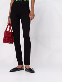 high-waisted slim fit jeans black embroidered logo to the side high waist belt loops concealed front fastening skinny cut Imported Composition Viscose 43%, Cotton 33%, Lyocell 17%, Polyester 5%, Spandex/Elastane 2% SIZE & FIT Model measurements Height 5 ft 9 in(1.75 m) Bust/Chest 28.74 in(73 cm) Hips 33.46 in(85 cm) Waist 23.22 in(59 cm) FittingInformation This piece fits true to size. We recommend you get your regular size Cut for a slim fit Made with a mid-weight stretch fabric Washing instructions Machine Wash