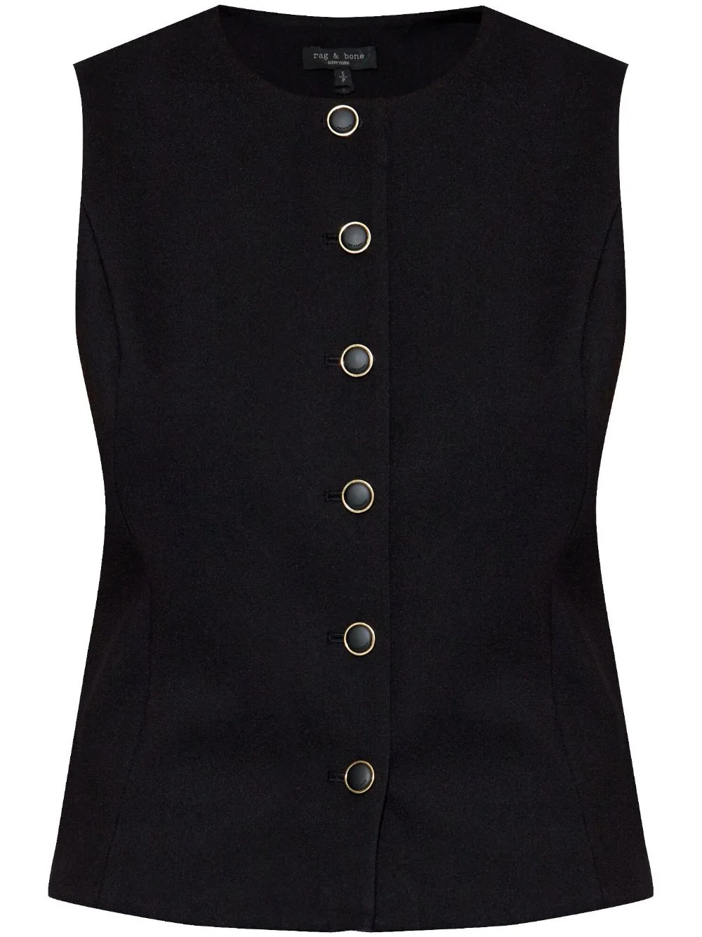 Irina Ponte waistcoat Highlights - Black - Crepe texture - Front button fastening - Round neck - Sleeveless - Straight hem Imported Composition Viscose 75%, Polyamide 20%, Elastane 5% Washing instructions Machine Wash
