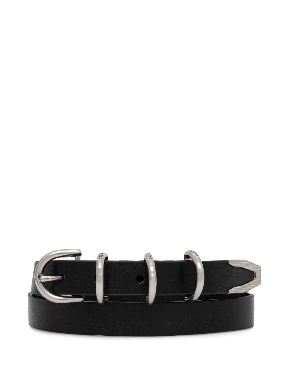 leather triple-ring belt Highlights - Black - Leather construction - Silver-tone buckle - Triple ring detail - Pointed end Imported Composition Calf Leather 100%