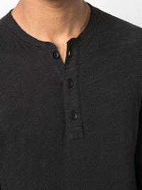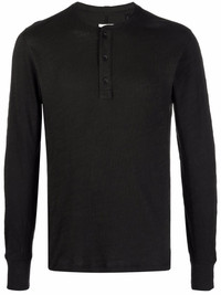 long-sleeve cotton top jet black cotton jersey knit round neck front button placket long sleeves straight hem Imported Composition Cotton 100% SIZE & FIT Model measurements Height 6 ft 2 in(1.87 m) Bust/Chest 38.18 in(97 cm) Hips 36.61 in(93 cm) Waist 29.13 in(74 cm) Measurement CHEST 40.94 in(104 cm) SLEEVE LENGTH 35.03 in(89 cm) LENGTH 27.16 in(69 cm) Shoulder Width 17.71 in(45 cm) FittingInformation This piece fits true to size. We recommend you get your regular size Cut for a slim fit Made with a mid-weight fabric Washing instructions Machine Wash