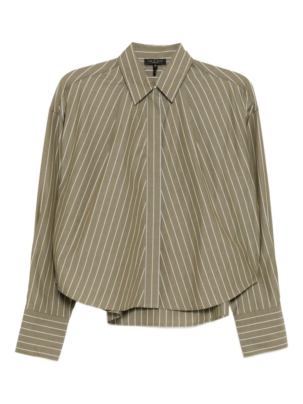 Martha striped poplin shirt Highlights - Khaki green - Concealed front button fastening - Drop shoulder - Buttoned-cuff sleeves - Curved hem Imported Composition Cotton 100% Washing instructions Machine Wash