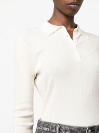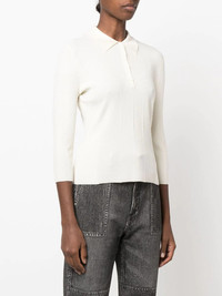 Pacey ribbed-knit polo top ivory white ribbed knit polo collar front button placket three-quarter length sleeves straight hem Imported Composition Viscose 75%, Nylon 21%, Spandex/Elastane 4% SIZE & FIT Model measurements Height 5 ft 10 in(1.78 m) Bust/Chest 31.49 in(80 cm) Hips 37 in(94 cm) Waist 23.62 in(60 cm) Measurement SLEEVE LENGTH 18.11 in(46 cm) Shoulder Width 15.74 in(40 cm) LENGTH 21.65 in(55 cm) BUST 37.79 in(96 cm) FittingInformation This piece fits true to size. We recommend you get your regular size Cut for a slim fit Made with a lightweight stretch fabric Washing instructions Dry Clean Only