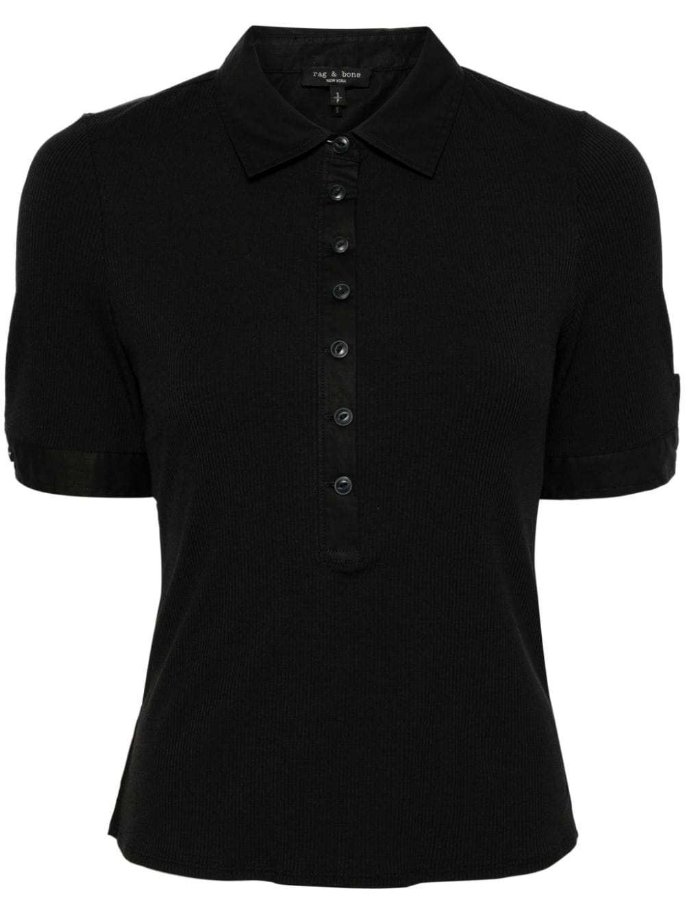ribbed cotton-modal blend polo shirt Highlights - Black - Cotton-modal blend - Fine ribbed - Polo collar - Short sleeves - Straight hem Imported Composition Cotton 45%, Modal 45%, Spandex/Elastane 10%