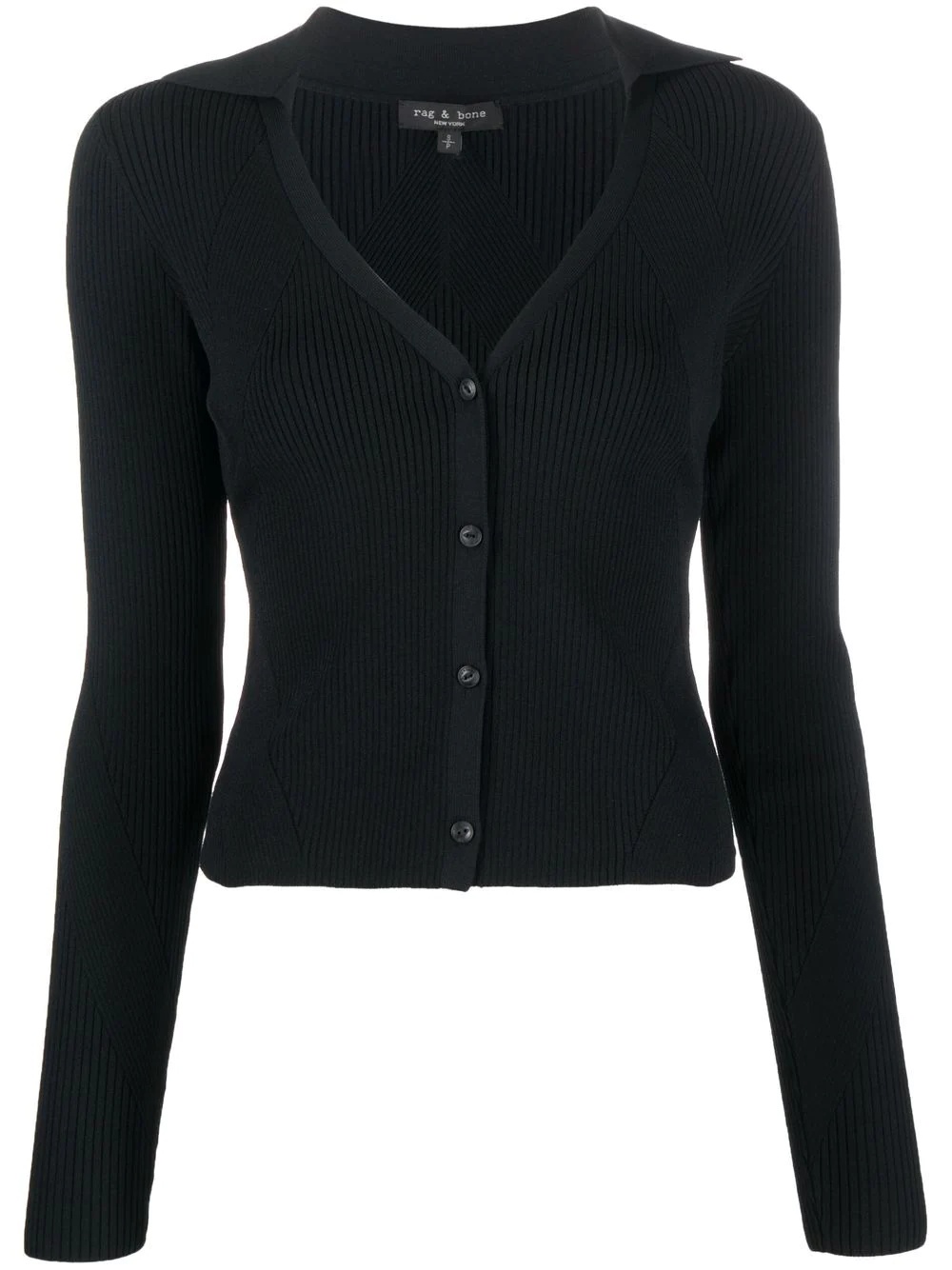 ribbed knitted cardigan black ribbed knit V-neck front button fastening long sleeves Imported Composition Viscose 57%, Nylon 41%, Spandex/Elastane 2% SIZE & FIT Model measurements Height 5 ft 10 in(1.79 m) Bust/Chest 33.07 in(84 cm) Hips 35.82 in(91 cm) Waist 24.01 in(61 cm) Measurement BUST 33.85 in(86 cm) FittingInformation This piece fits true to size. We recommend you get your regular size Cut for a slim fit Made with a mid-weight stretch fabric Washing instructions Dry Clean Only