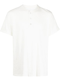 round-neck short-sleeve T-shirt white cotton tonal design round neck front button placket short sleeves straight hem Imported Composition Cotton 100% SIZE & FIT Model measurements Height 6 ft 2 in(1.88 m) Bust/Chest 38.18 in(97 cm) Hips 37 in(94 cm) Waist 29.92 in(76 cm) Measurement CHEST 37.79 in(96 cm) Shoulder Width 16.92 in(43 cm)