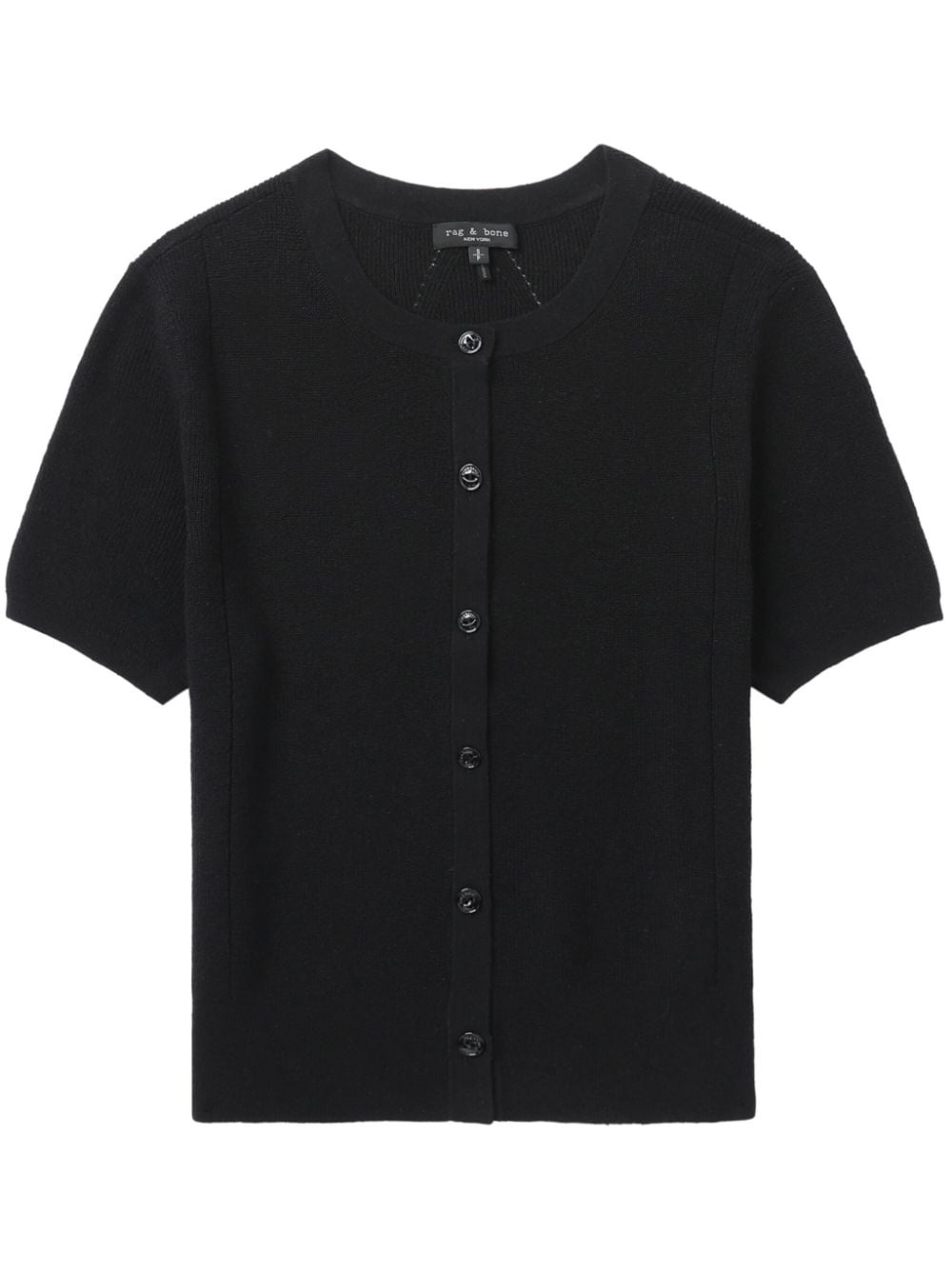 short-sleeve knit cardigan Highlights - Black - Cotton blend - Knitted construction - Crew neck - Front button fastening - Short sleeves - Straight hem Imported Composition Cotton 63%, Linen/Flax 26%, Nylon 11%