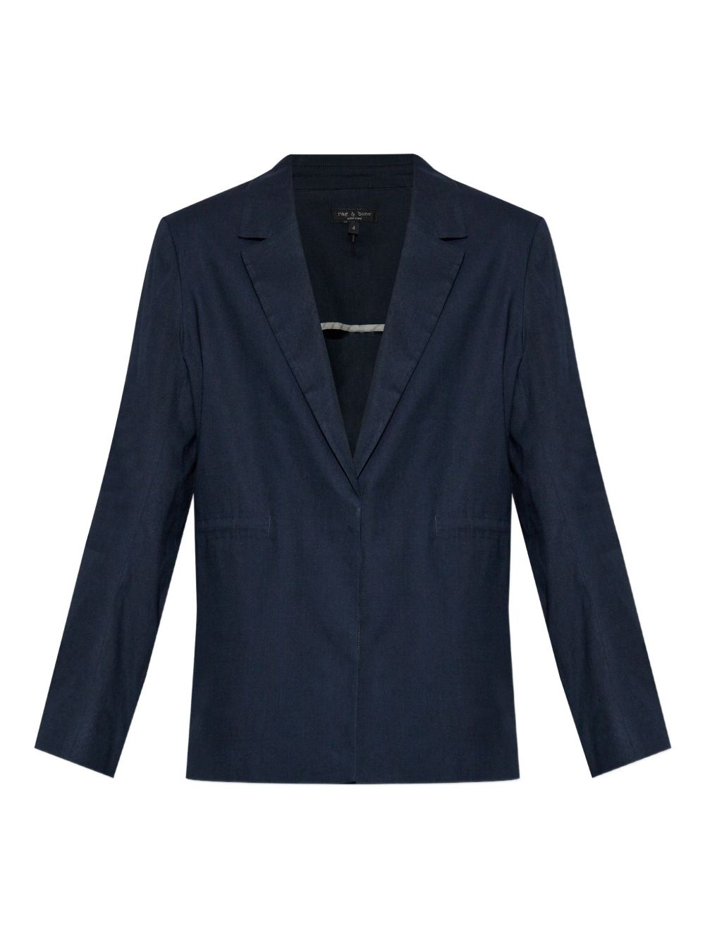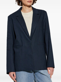 single-breasted blazer Highlights - Navy blue - Concealed front fastening - Notched lapels - Long sleeves - Straight hem Imported Composition Linen/Flax 52%, Viscose 42%, Fabric 5%, Spandex/Elastane 1%