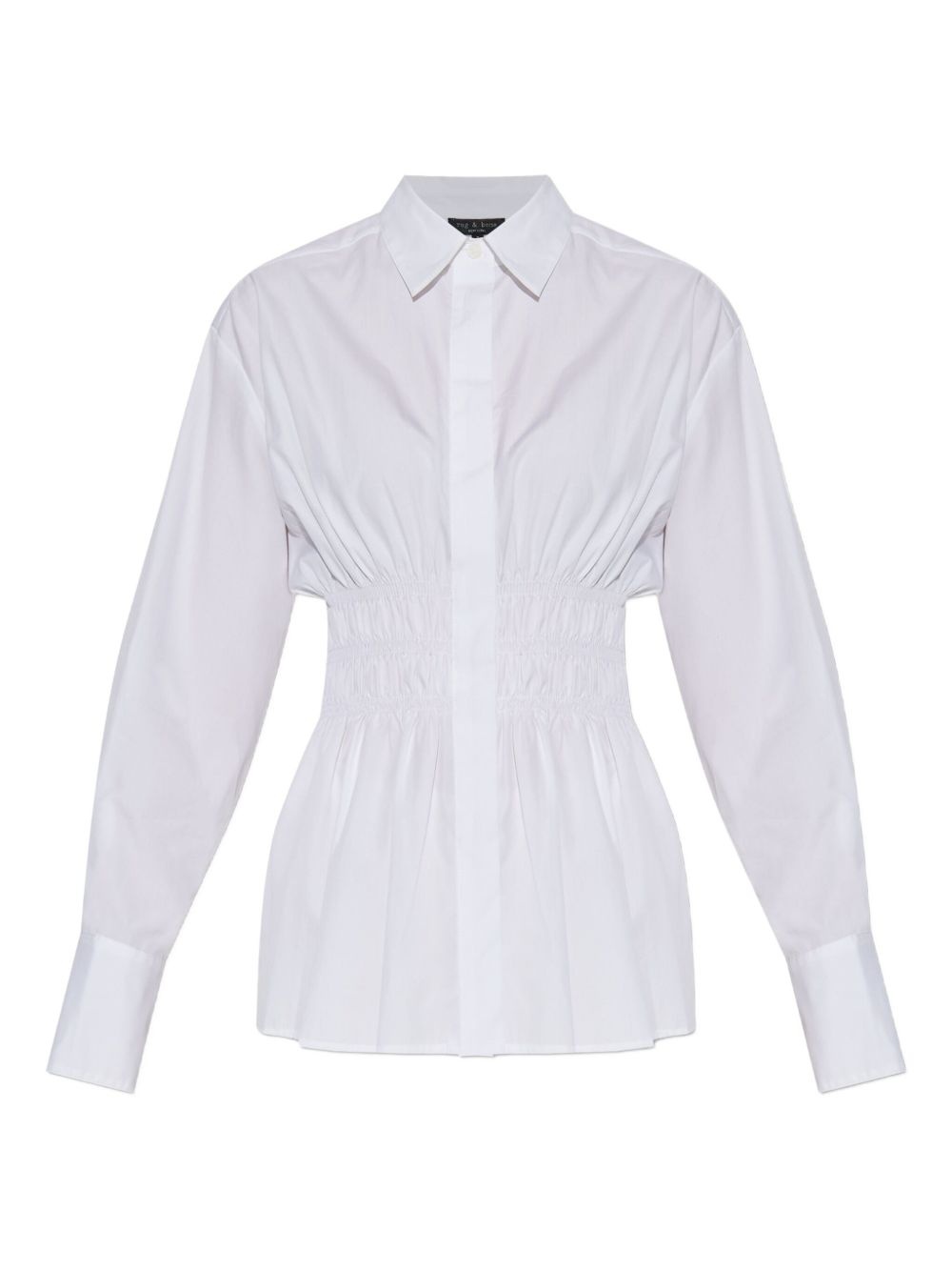 smocked-waist button-down shirt Highlights - White - Smocked detailing at the waist - Long sleeves - Classic collar - Button placket - Fitted cuffs Imported Composition Cotton 100% Washing instructions Read Manufacturer Guidelines