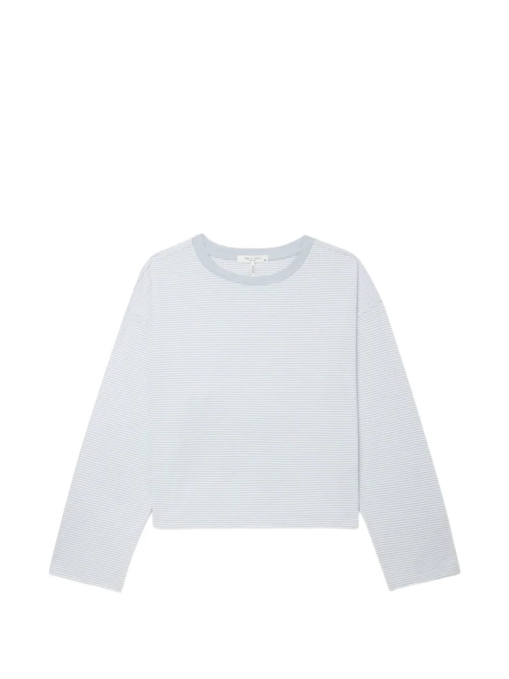 striped long-sleeve top Highlights - Light blue - Striped pattern - Long sleeves - Round neck - Cropped Imported Composition Cotton 100% Washing instructions Read Manufacturer Guidelines