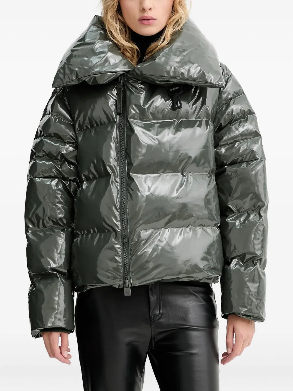Alta Vision puffer jacket Highlights - Olive green - Front zip fastening - Two side inset pockets - Long sleeves Imported Composition Outer: Polyester 100% Lining: Nylon 100% Polyester 100% SIZE & FIT Model measurements Height 5 ft 10 in(1.78 m) Bust/Chest 28.74 in(73 cm) Hips 31.49 in(80 cm) Waist 23.62 in(60 cm) Washing instructions Machine Wash