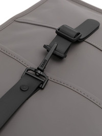 carabiner-fastening waterproof backpack Highlights - Medium grey - Waterproof - Foldover top with magnetic fastening - Carabiner fastening - Two adjustable shoulder straps - Rear zip-fastening pocket - Internal laptop pocket - Main compartment Imported Composition Outer: Polyurethane 100%, Polyester 100% SIZE & FIT Model measurements Height 6 ft 0 in(1.84 m) Bust/Chest 36.22 in(92 cm) Hips 35.43 in(90 cm) Waist 26.77 in(68 cm) Measurement DEPTH 2.75 in(7 cm) HEIGHT 15.74 in(40 cm) STRAP 12.59 in(32 cm) WIDTH 11.41 in(29 cm)