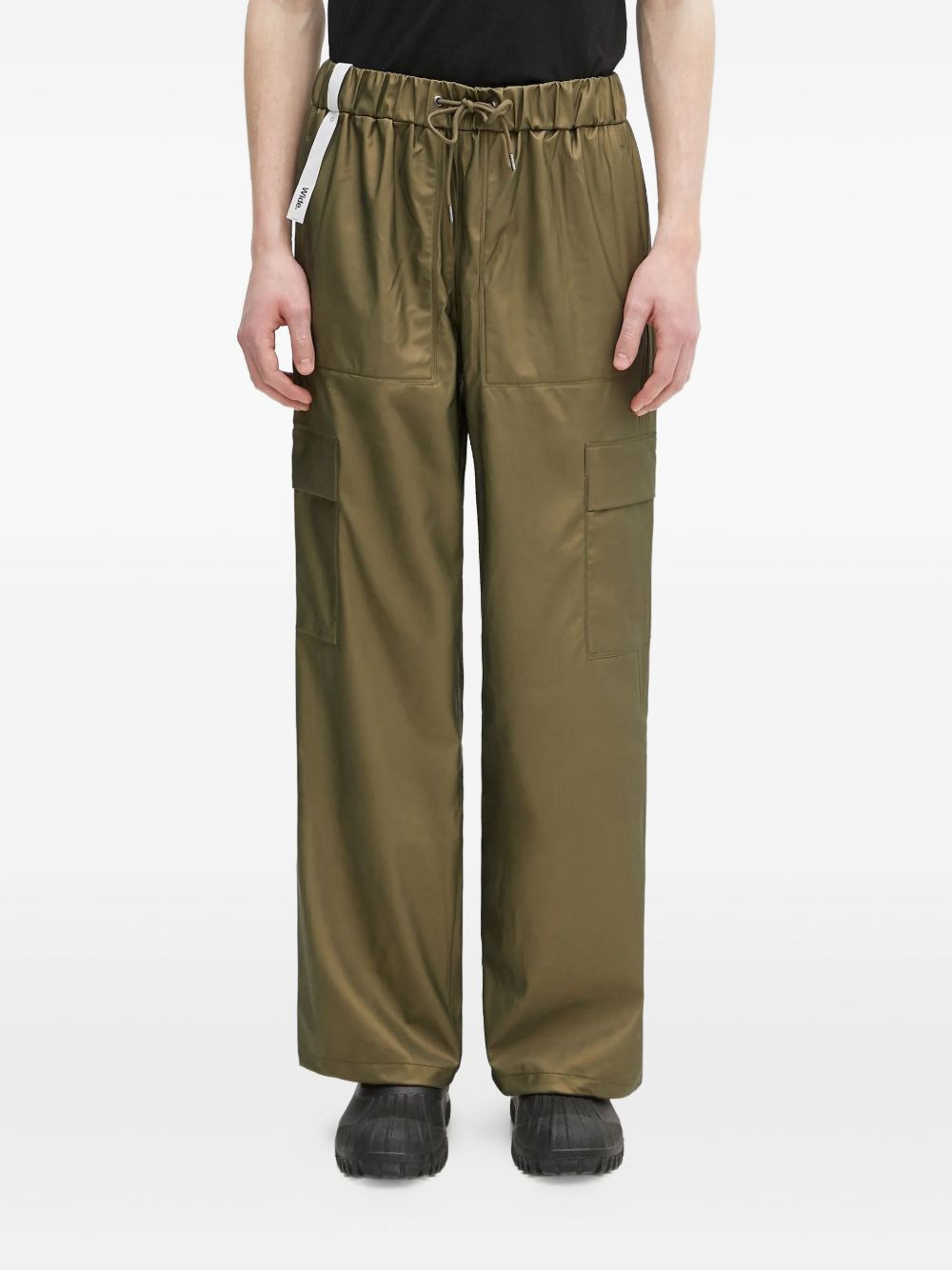 drawstring cargo trousers Highlights - Olive green - Cargo pockets - Drawstring fastening - Elasticated waistband Imported Composition Polyurethane 100%, Polyester 100% Washing instructions Read Manufacturer Guidelines
