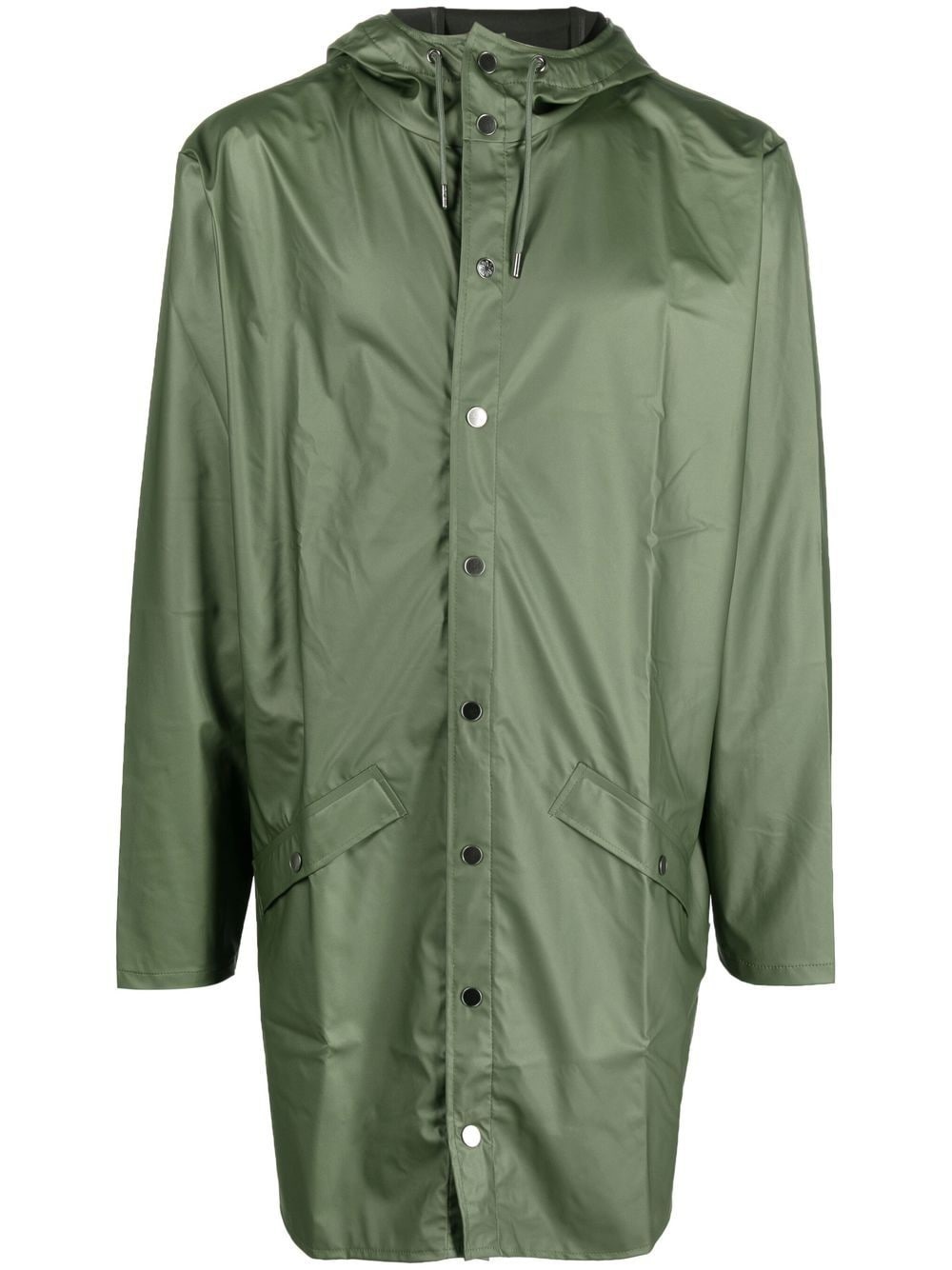 drawstring hood raincoat Highlights - Evergreen green - Waterproof - Two side flap pockets - Front press-stud fastening - Drawstring hood - Long sleeves - Mid-length - Straight hem - When buying this unisex item, keep in mind that it is graded in standard men's sizing. Imported Composition Polyester 100%, Polyurethane 100% SIZE & FIT Model measurements Height 5 ft 11 in(1.8 m) Bust/Chest 31.49 in(80 cm) Hips 35.82 in(91 cm) Waist 24.8 in(63 cm) Measurement CHEST 43.3 in(110 cm) WAIST 44.09 in(112 cm) SLEEVE LENGTH 25.19 in(64 cm) Shoulder Width 18.89 in(48 cm) FittingInformation This piece fits true to size. We recommend you get your regular size Cut for a loose fit Made with a mid-weight fabric Washing instructions Machine Wash