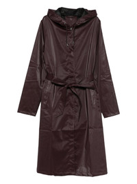 hooded belted jacket Highlights - Brown - A-line shape - Self-tie belt - Hooded neckline - Long sleeves - Button front fastening Imported Composition Polyester 100% Washing instructions Read Manufacturer Guidelines
