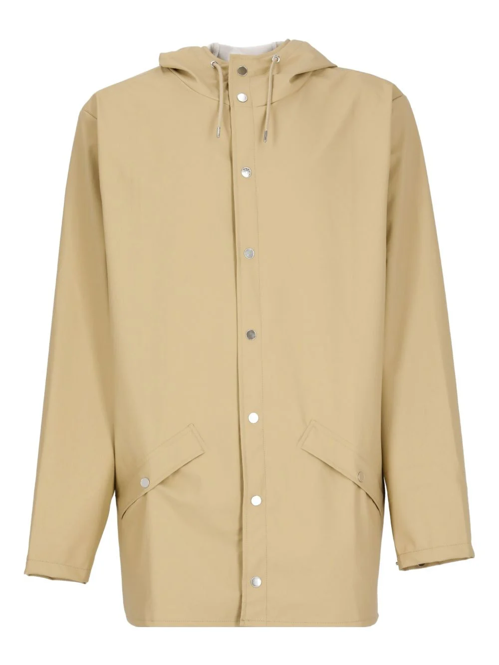 hooded button-down raincoat Highlights - Beige - Drawstring hood - Buttoned flap-pockets - Snap-button closure Imported Composition Polyester 100%, Polyurethane 100% Washing instructions Read Manufacturer Guidelines