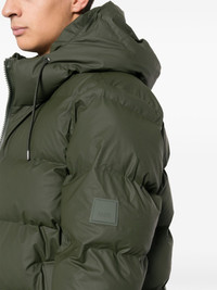 hooded padded jacket Highlights - Dark green - Padded design - Logo patch at the sleeve - Two front welt pockets - Front zip fastening - Drawstring hood - Long sleeves - Straight hem Imported Composition Lining: Nylon 100%, Polyester 100% Outer: Polyester 100%, Polyurethane 100% SIZE & FIT Model measurements Height 6 ft 1 in(1.86 m) Bust/Chest 36.61 in(93 cm) Hips 37 in(94 cm) Waist 28.74 in(73 cm) FittingInformation Designed for a regular fit, allowing for a comfortably loose fit throughout the body Made from a padded non-stretch fabric, giving it no natural elasticity Washing instructions Machine Wash