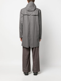 hooded stud-fastening raincoat Highlights - Medium grey - Waterproof - Windproof - Drawstring hood - High neck - Front press-stud fastening - Long sleeves - Two side stud-fastening pockets - Rear slit - Straight hem - Thigh-length - When buying this unisex item, keep in mind that it is graded in standard men's sizing. Imported Composition Polyester 100%, Polyurethane 100% SIZE & FIT Model measurements Height 5 ft 9 in(1.76 m) Bust/Chest 33.07 in(84 cm) Hips 34.64 in(88 cm) Waist 25.59 in(65 cm) FittingInformation This unisex piece is designed for a loose fit whether you usually select women's or men's sizes Made from a midweight non-stretch fabric, this piece offers minimal elasticity when worn Washing instructions Dry Clean Only