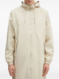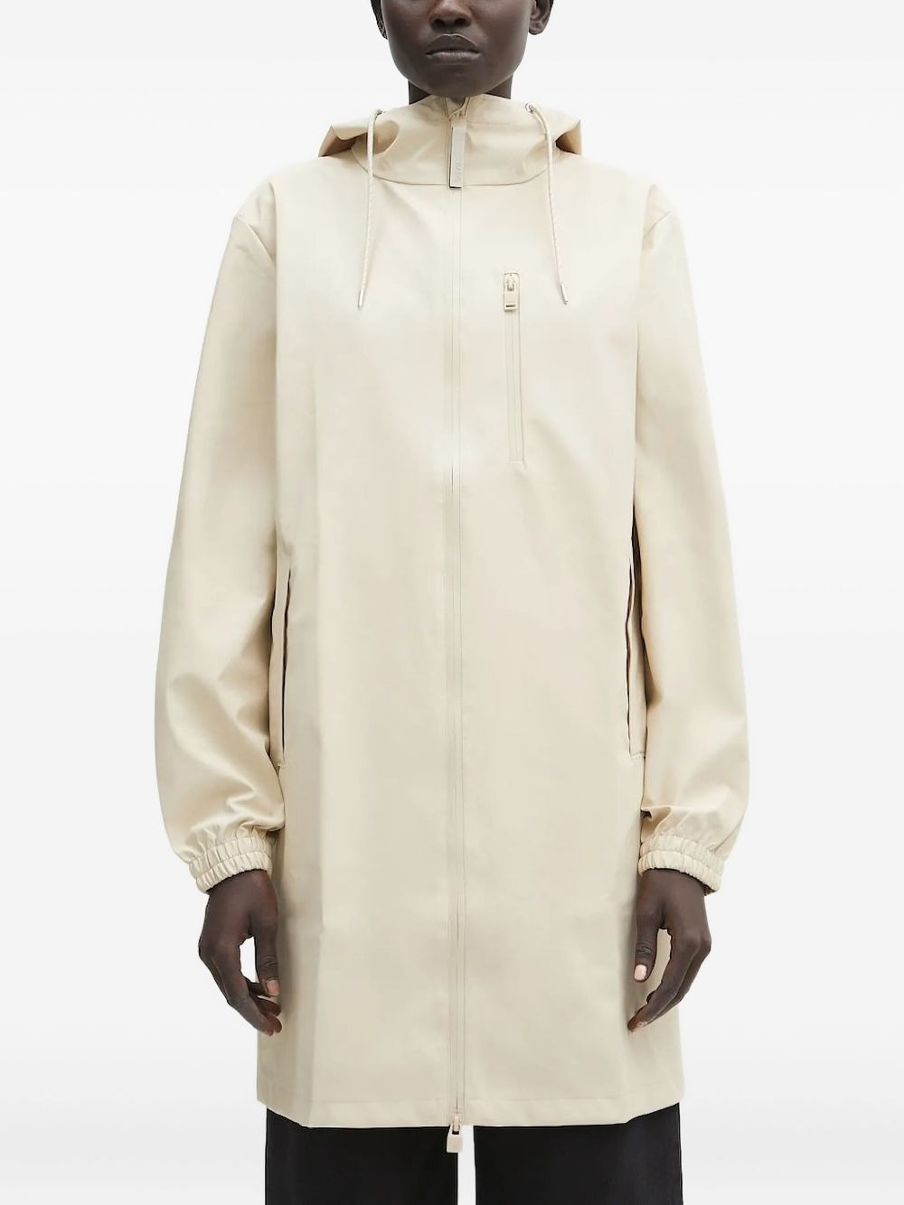 hooded zip-front trench coat Highlights - Beige - Hooded neckline - Zip front fastening - Long sleeves - Elasticated cuffs - Welt pockets Imported Composition Polyester 100% Washing instructions Read Manufacturer Guidelines