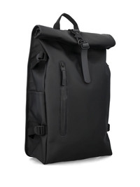 large rolltop backpack Highlights - Black - Single flat top handle - Two padded adjustable shoulder straps - Roll-top opening - Clip fastening - Front zip-fastening pocket - Slip pockets to the sides - Main compartment Imported Composition Outer: Polyester 100% SIZE & FIT Measurement DEPTH 5.9 in(15 cm) HANDLE 3.54 in(9 cm) HEIGHT 19.68 in(50 cm) STRAP 35.03 in(89 cm) WIDTH 11.81 in(30 cm)