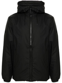 Lohja jacket Highlights - Black - Lightweight construction - Waterproof - Windproof - Insulated design - Front zip fastening - Mock neck - Drawstring hood - Long sleeves - Elasticated cuffs - Logo patch at the sleeve - Two side welt pockets - Full lining - Internal zip-fastening pocket - Elasticated waistband with internal drawstring - Straight hem - When buying this unisex item, keep in mind that it is graded in standard men's sizing. Imported Composition Outer: Polyurethane 100% Lining: Polyester 100%, Nylon 100% SIZE & FIT Model measurements Height 5 ft 10 in(1.77 m) Bust/Chest 31.88 in(81 cm) Hips 36.22 in(92 cm) Waist 24.01 in(61 cm) FittingInformation This unisex piece is designed for a relaxed fit whether you usually select women's or men's sizes The internal drawstring at the hem allows for fitted preferences Made from a padded non-stretch fabric, giving it no natural elasticity