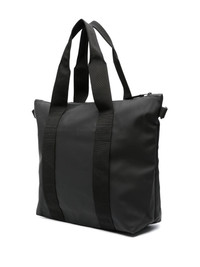 Mini faux-leather tote bag Highlights - Jet black - Faux leather - Coated finish - Waterproof - Tonal hardware - Logo print to the front - Keyring attachment - Top zip fastening - Adjustable detachable shoulder strap - Two long top handles - Main compartment Imported Composition Outer: Polyester 100%, Polyurethane 100% SIZE & FIT Measurement DEPTH 5.11 in(13 cm) HANDLE 7.87 in(20 cm) HEIGHT 14.17 in(36 cm) STRAP 24.8 in(63 cm) WIDTH 13.77 in(35 cm)