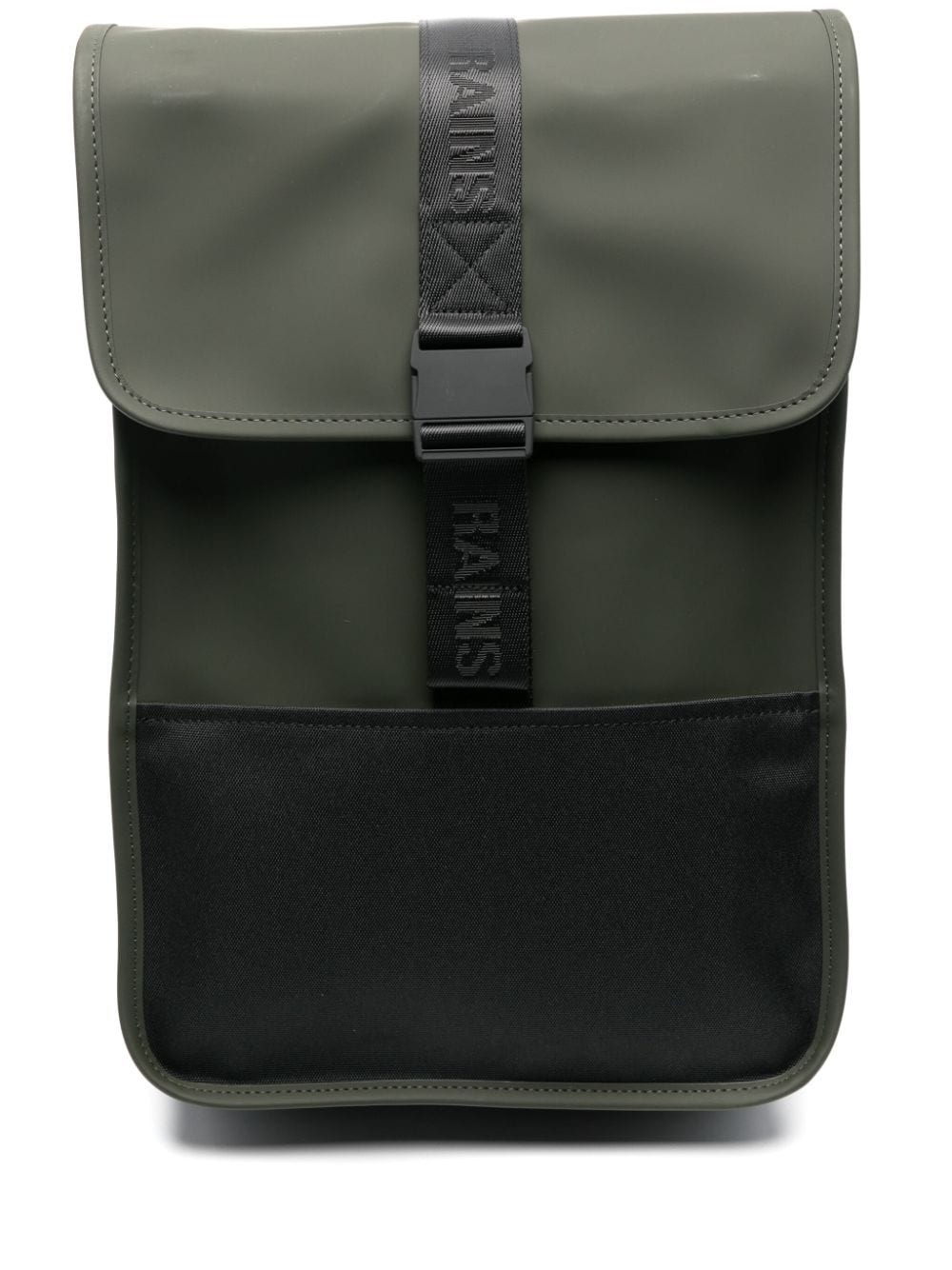 small Trail waterproof backpack Highlights - Moss green - Faux leather - Smooth grain - Waterproof - Tonal stitching - Jacquard logo motif at the straps - Panelled design - Padded mesh panelling to the rear - Foldover top with buckle fastening - All-around zip fastening - Single rolled top handle - Two padded adjustable shoulder straps - Main compartment - Internal padded laptop pocket - Branded zip puller - Full lining Imported Composition Outer: Polyester 100%, Polyurethane 100% SIZE & FIT Measurement DEPTH 7.87 in(20 cm) HANDLE 7.87 in(20 cm) HEIGHT 9.05 in(23 cm) STRAP 23.62 in(60 cm) WIDTH 15.74 in(40 cm)