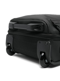 Texel cabin bag Highlights - Black - Waterproof - Matte effect - All-around zip fastening - Clip-on buckle fastening - Single flat top handle - Logo print to the front - Main compartment - Internal zip-fastening pocket - Two wheels Imported Composition Lining: Polyurethane 100% Outer: Polyester 100% SIZE & FIT Measurement DEPTH 5.9 in(15 cm) HANDLE 1.57 in(4 cm) HEIGHT 15.74 in(40 cm) WIDTH 12.2 in(31 cm)