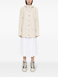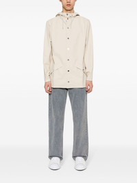 waterproof lightweight jacket Highlights - Dune beige - Lightweight construction - Waterproof - Windproof - Eyelet vents - Silver-tone hardware - Logo tag to the side - Drawstring hood - Storm flap - Drop shoulder - Long sleeves with press-stud fastening cuffs - Two front flap pockets - Front press-stud fastening - High-low hem - Partial lining - When buying this unisex item, keep in mind that it is graded in standard men's sizing. Made in United Kingdom Composition Polyester 100%, Polyurethane 100% SIZE & FIT Model measurements Height 5 ft 10 in(1.78 m) Bust/Chest 33.46 in(85 cm) Hips 36.22 in(92 cm) Waist 23.22 in(59 cm) Measurement CHEST 45.66 in(116 cm) SLEEVE LENGTH 25.59 in(65 cm) Shoulder Width 19.68 in(50 cm) FittingInformation This unisex piece is designed for a loose fit whether you usually select women's or men's sizes Made from a lightweight non-stretch fabric, this piece offers minimal elasticity when worn